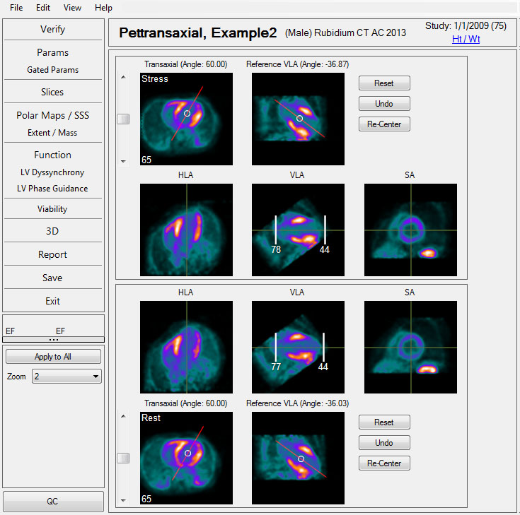 Caution:  ECToolbox is more dependent on technical quality control of images than a planar imaging protocol would be. The principal source of false positive studies is the failure to acquire and process studies accurately. It is important to ensure complete quality control, as described in the manuals that accompany your nuclear medicine camera system. Artifacts of acquisition or reconstruction, including errors in quality control, will affect both the visual images and the quantitative analysis. In the event of conflicting, equivocal or confusing results and/or findings, always verify that proper computer processing has been performed.